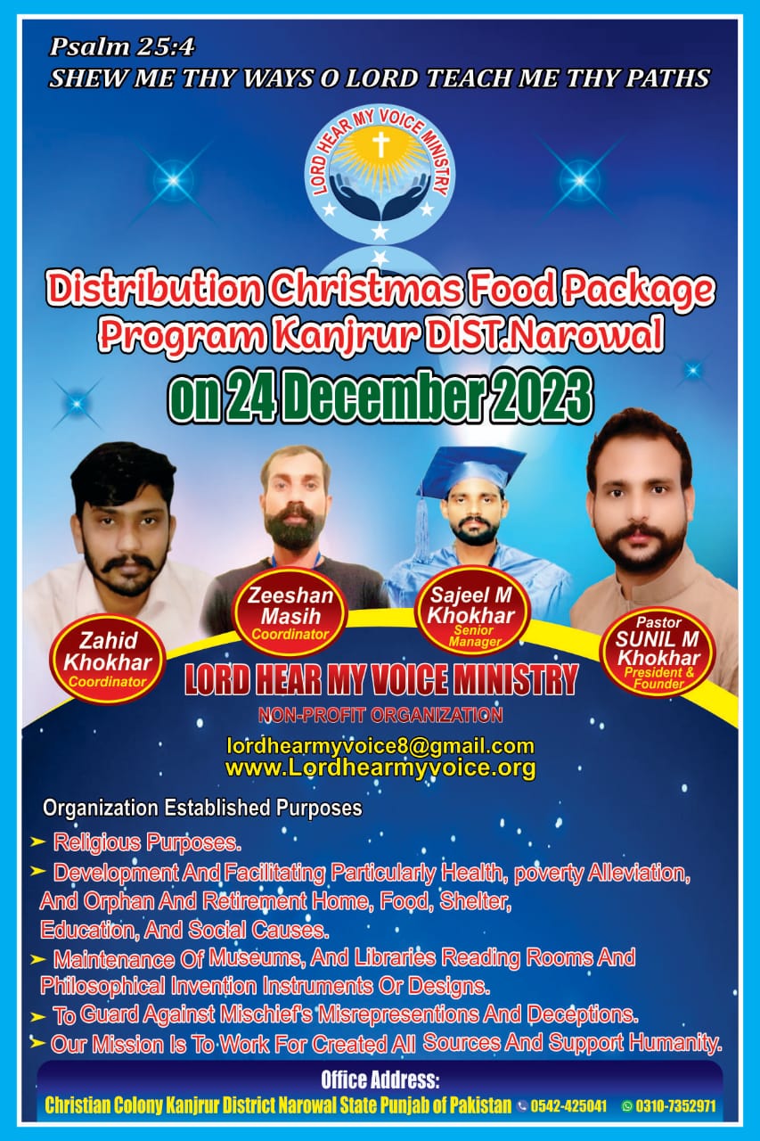 Christian Colony, Kanjpur P/O Box Khas, Tehsil Shakargarh, District Narowal, Punjab, Pakistan.
